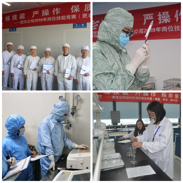 為全面貫徹落實(shí)中國(guó)生物“質(zhì)量文化年”活動(dòng)精神,進(jìn)一步強(qiáng)化員工質(zhì)量意識(shí),提升員工崗位操作技能和綜合素質(zhì),同時(shí)為迎“雙慶”營(yíng)造濃厚的比學(xué)趕超氛圍,武漢公司從9月份起陸續(xù)在各部室組織開展了以“練技能嚴(yán)操作保質(zhì)量”為主題的崗位技能競(jìng)賽活動(dòng),主要設(shè)置了動(dòng)物實(shí)驗(yàn)--異常毒性實(shí)操、稱量-配液-測(cè)PH值、更衣比賽等15項(xiàng)競(jìng)賽項(xiàng)目,共計(jì)有300余名員工參賽。
